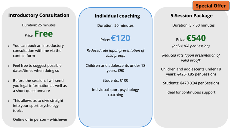 Individual support specifically for parents of young high-performance athletes or artistically active children. The goal is to provide empowering, reflective guidance for the talent and to support the family’s mental balance.